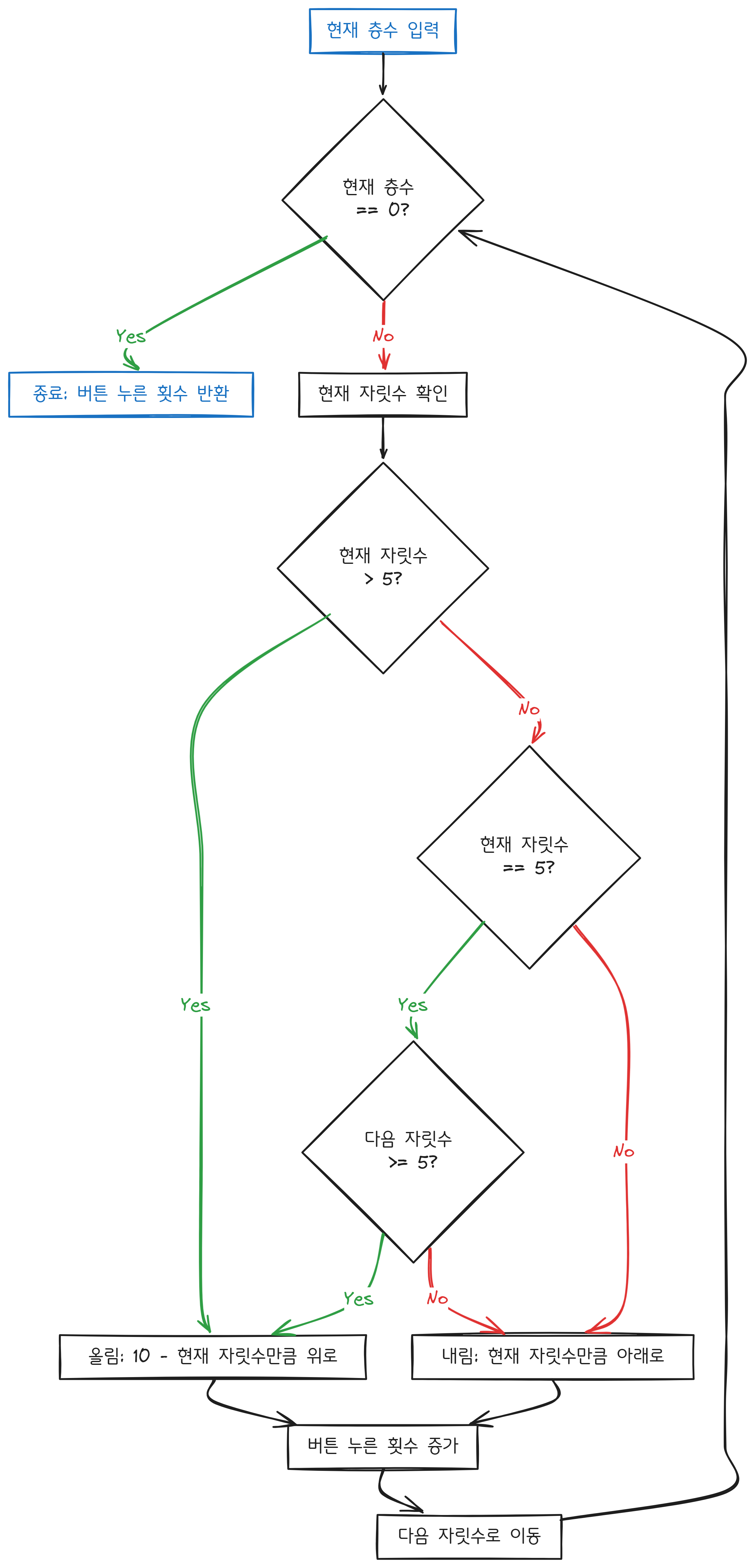 - storey 뒤에서 두 자리씩 확인하여 층수를 올릴지 내릴지를 결정하였습니다.