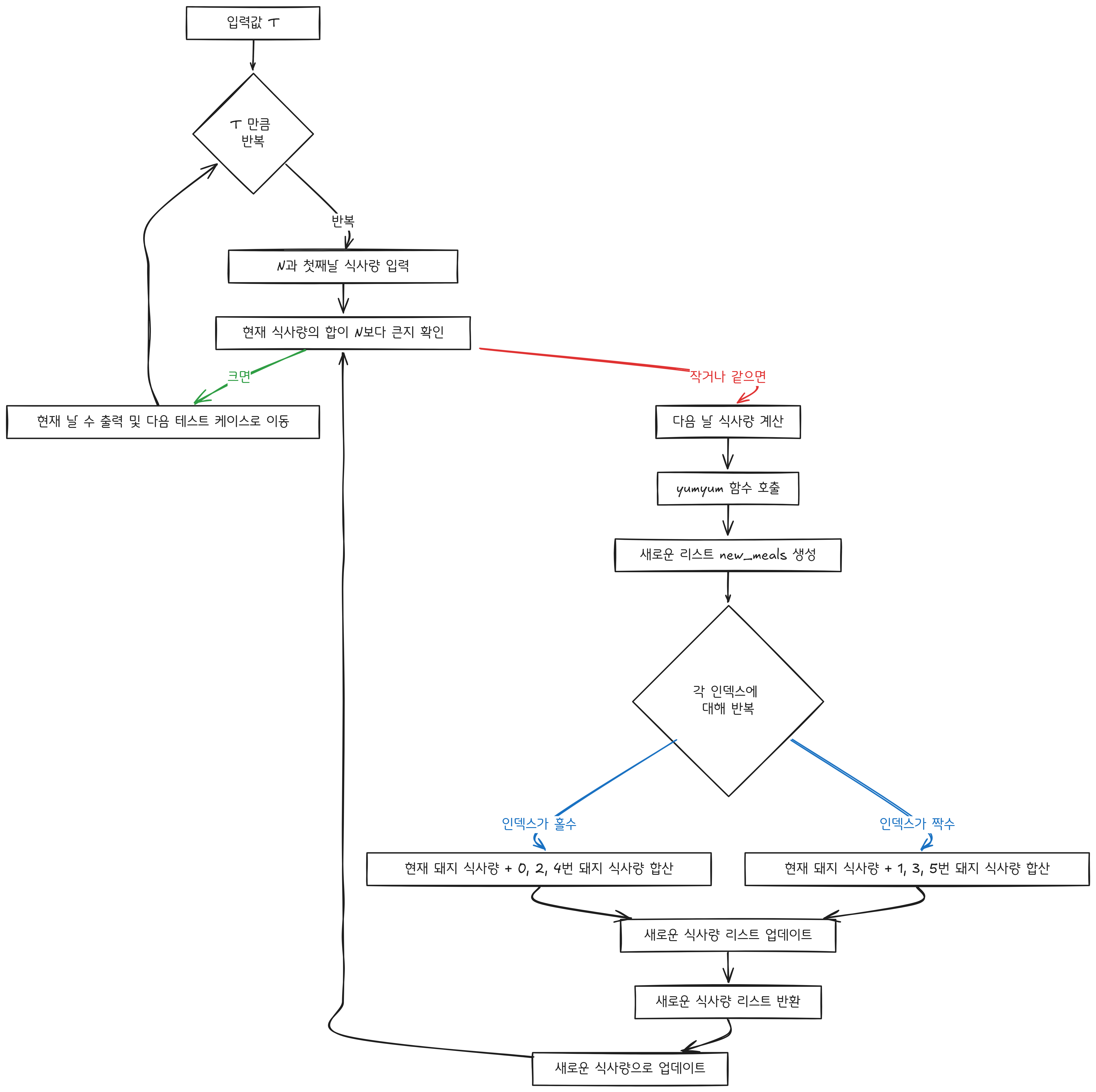 - 매 반복마다 식사량의 총합을 구하여 결과값도 업데이트 시켜주었습니다.
