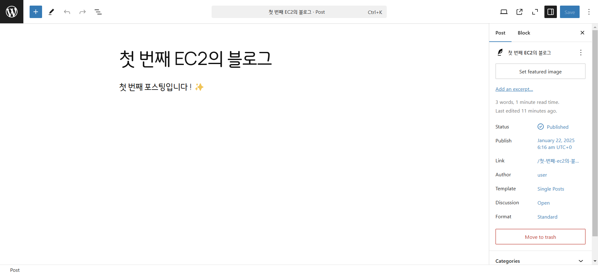 - 오늘 수업에서는 AWS에서 제공하는 EBS와 ELB 서비스에 대한 실습을 진행하였고, WordPress를 통해 블로그 EC2도 생성해보았습니다.