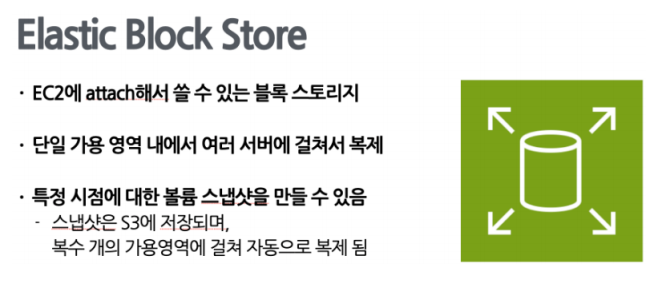 (저희가 아는 그 EBS 아니구요 ㅋㅋㅋㅋㅋㅋ)- EC2에 attach(연결)하여 쓸 수 있는 블록 스토리지입니다.