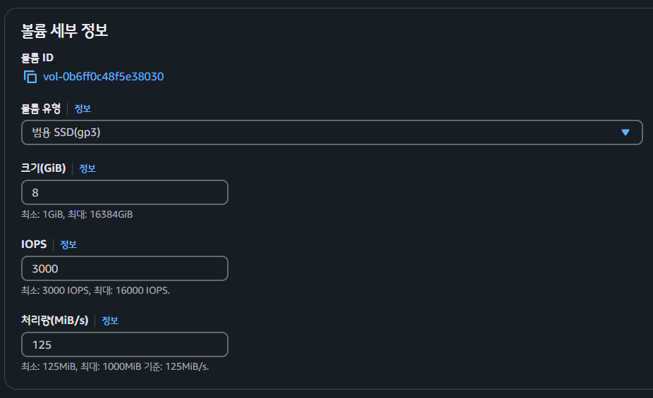 - 인스턴스를 생성할 때, 볼륨은 기본적으로 하나가 생성됩니다.