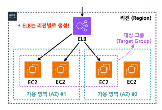- 리전 내 복수 개의 가용 영역이 있고, ELB는 이 리전 내에 존재하는데, ELB는 리전별로 생성이 됩니다.