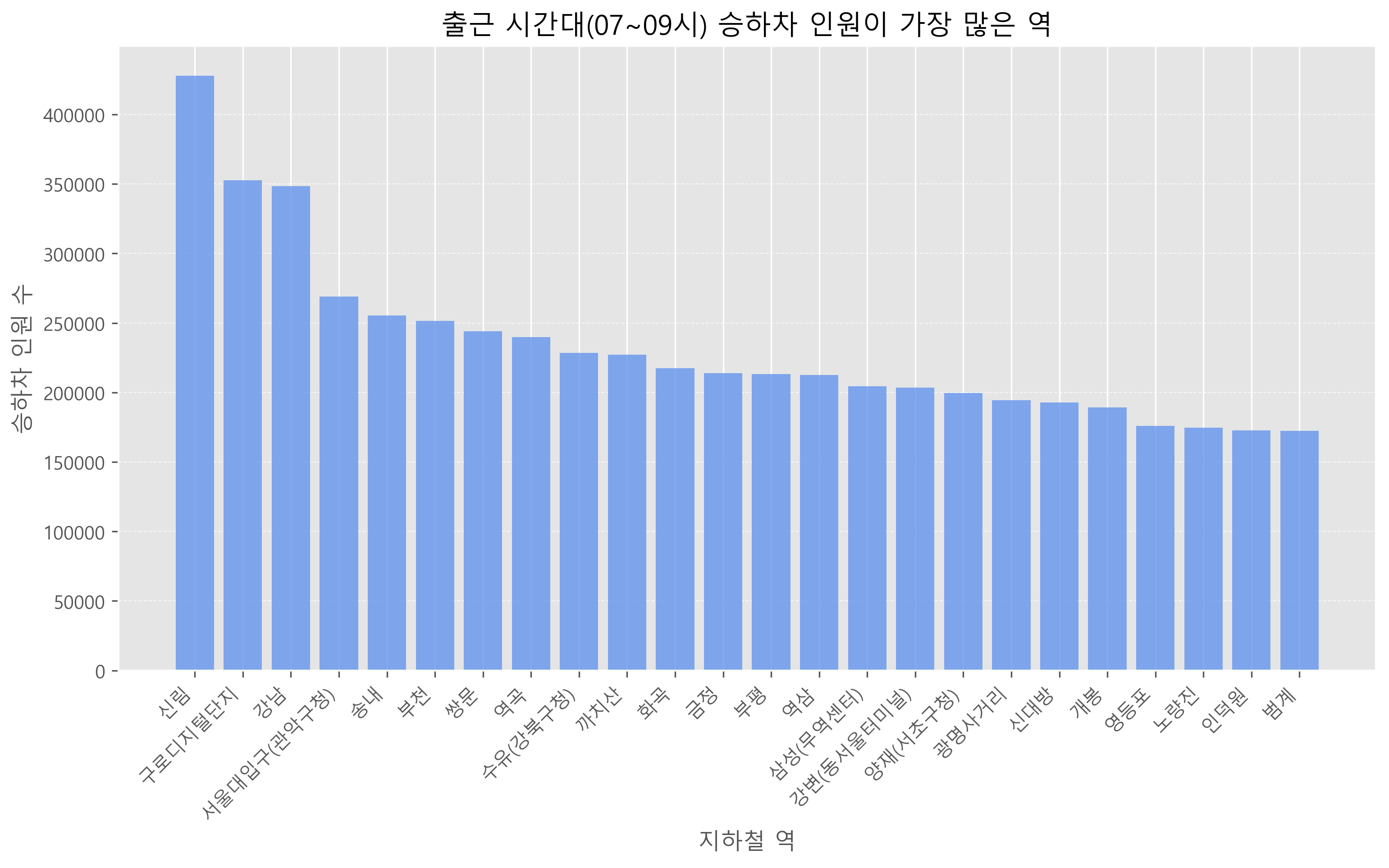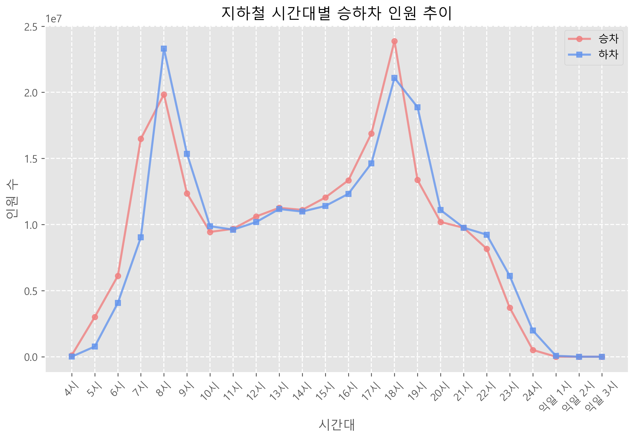 🚇 지하철 시간대별 승하차 인원 추이 분석