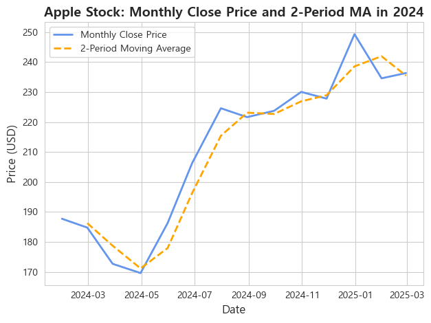 - 이 차트를 통해서 주식의 월간 가격 흐름과 단순 이동평균선을 통해 전반적인 추세를 보다 명확하게 파악할 수 있었습니다.