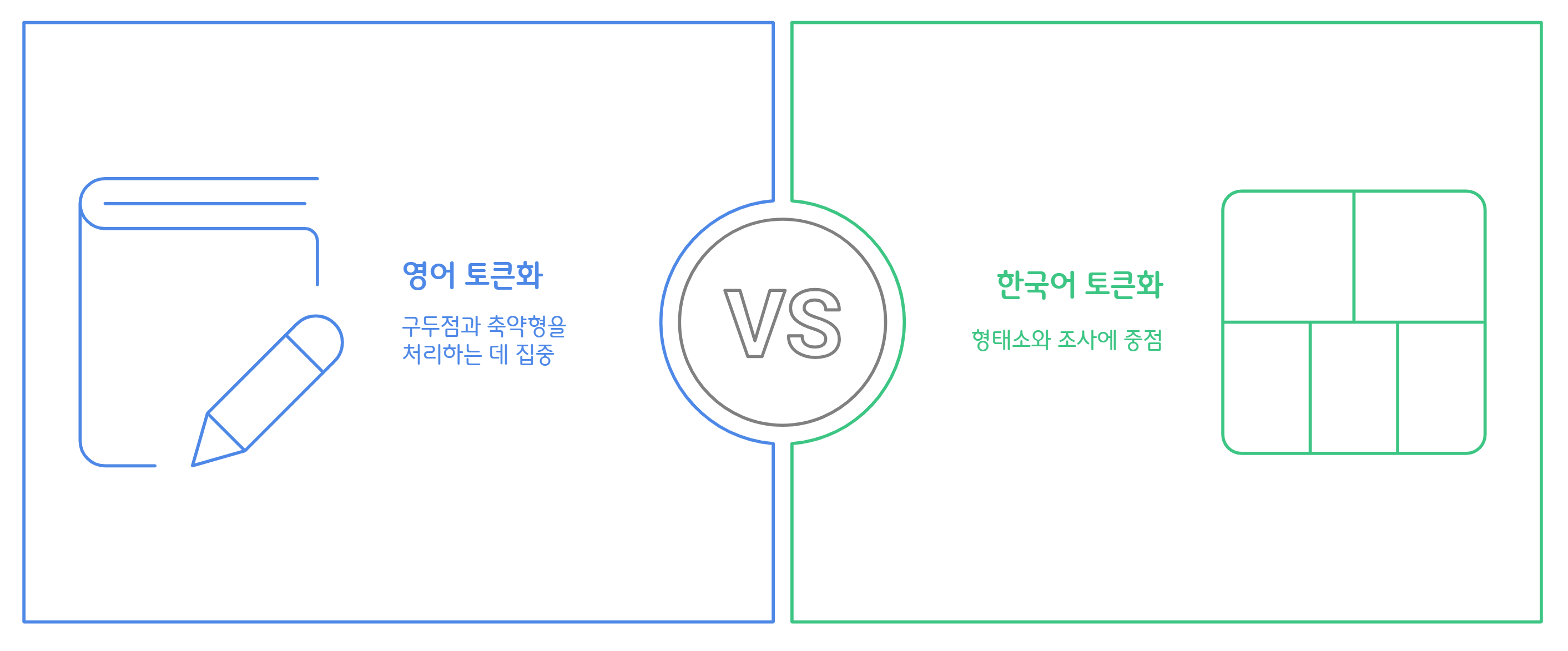 - 언어마다 토큰을 정의하는 기준이 다르며, 영어는 띄어쓰기가 명확하지만 한국어는 교착어의 특성으로 인해 단순 띄어쓰기만으로는 한계가 있습니다.