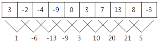 - 매일 측정한 온도가 정수의 수열로 주어졌을 때, 연속적인 며칠 동안의 온도의 합이 가장 큰 값을 계산하는 프로그램을 작성하시오.