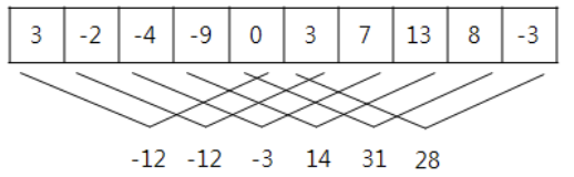 - 또 다른 예로 위와 같은 온도가 주어졌을 때, 모든 연속적인 5일 간의 온도의 합은 아래와 같으며,