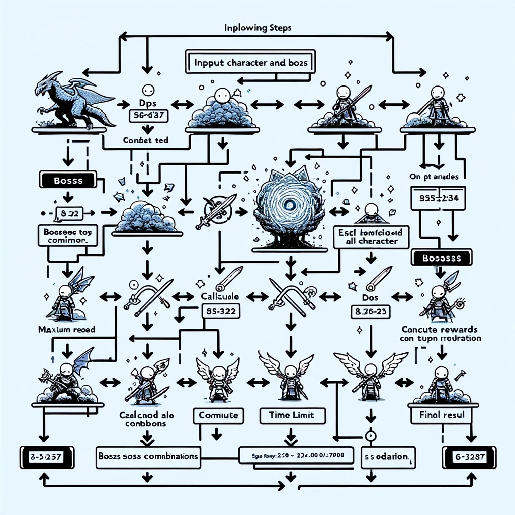 - 캐릭터와 보스 데이터 입력: 각 캐릭터의 Damage와 각 보스의 체력 및 메소를 입력받습니다.
