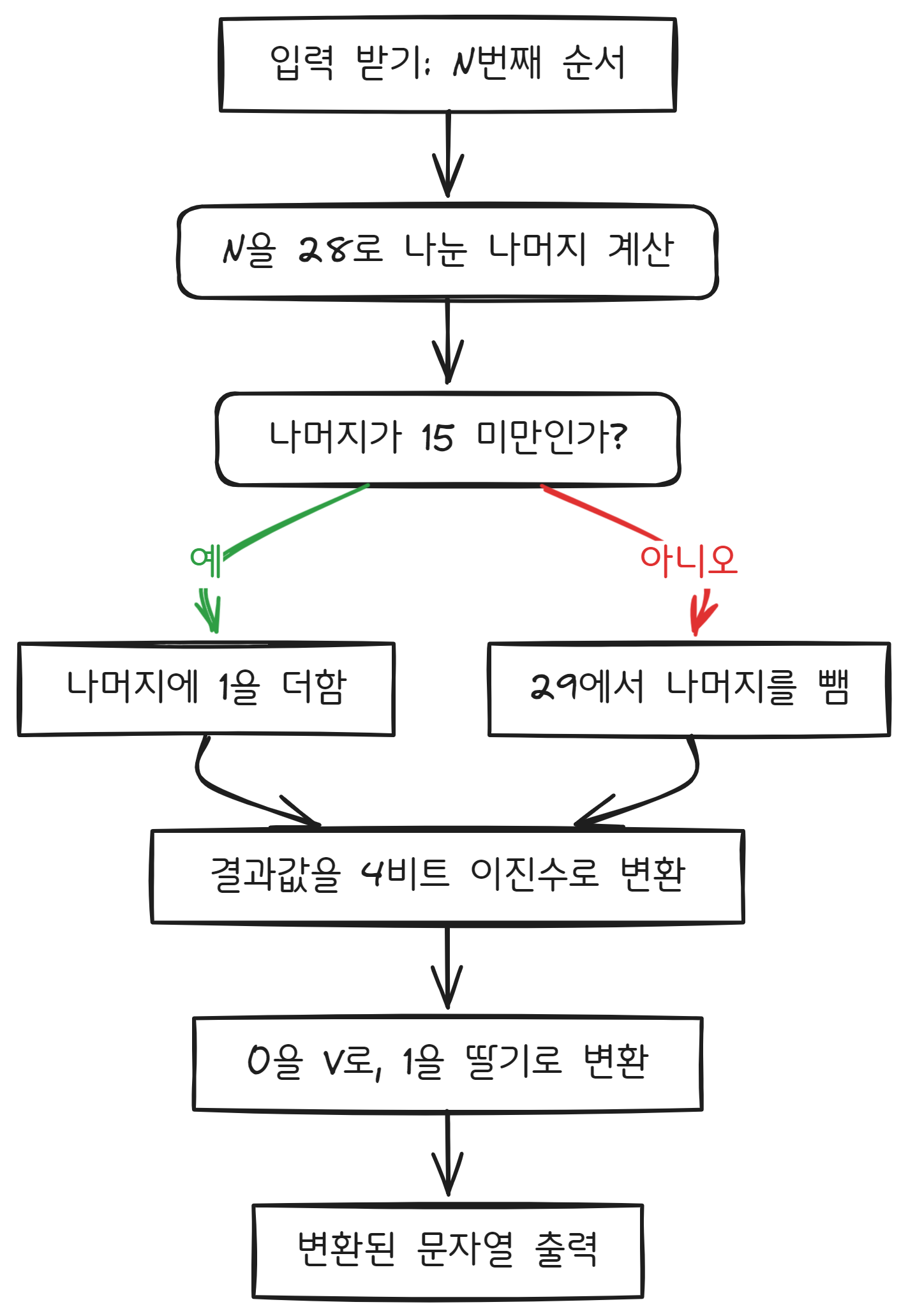 print(f'{cycle:04b}'.replace('0', 'V').replace('1', '딸기'))