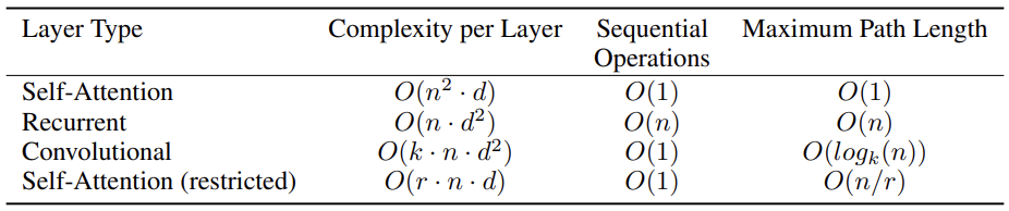 - Self-attention과 convolutional은 높은 병렬 처리 효율성을 가짐