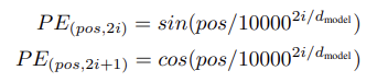 - sin과 cos 함수를 이용한 고정된 positional encoding 사용