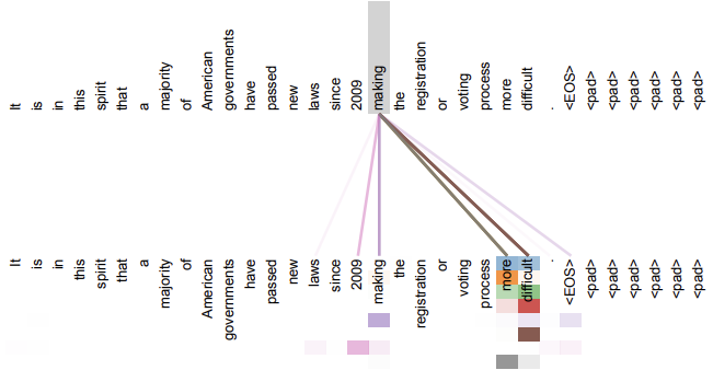- 5번째 layer의 encoder self-attention에서 'making'과 관련된 단어들 간의 관계